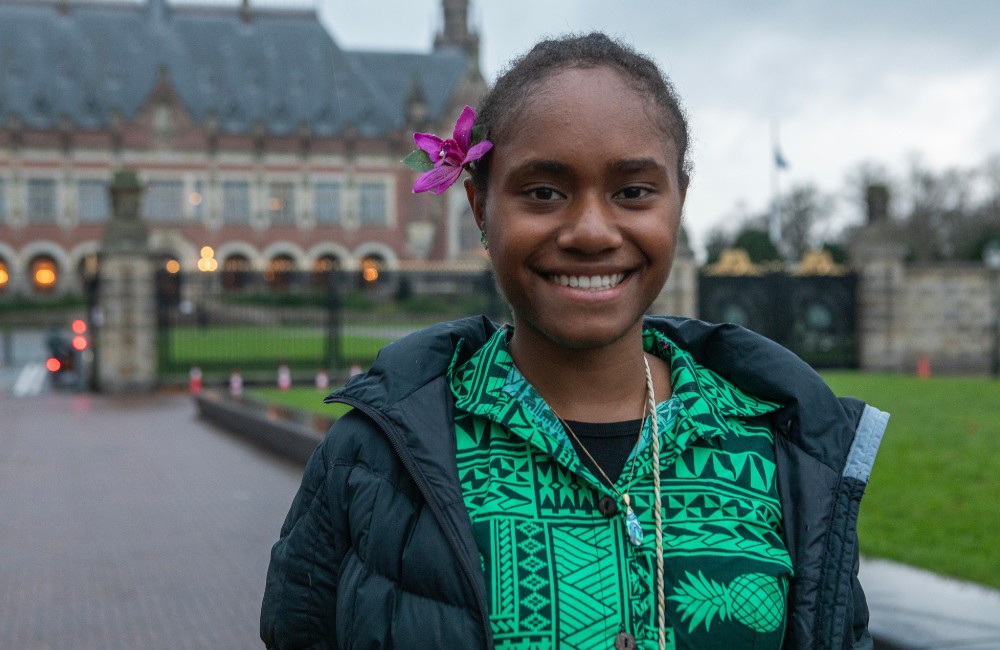 Vepaia, a young climate activist from Vanuatu, headed to the International Court of Justice in 2024 to advocate for the inclusion of children’s rights in a landmark case. She called for a strong advisory opinion at the world’s highest court that acknowledges countries’ obligations to tackle the climate crisis and protect future generations.