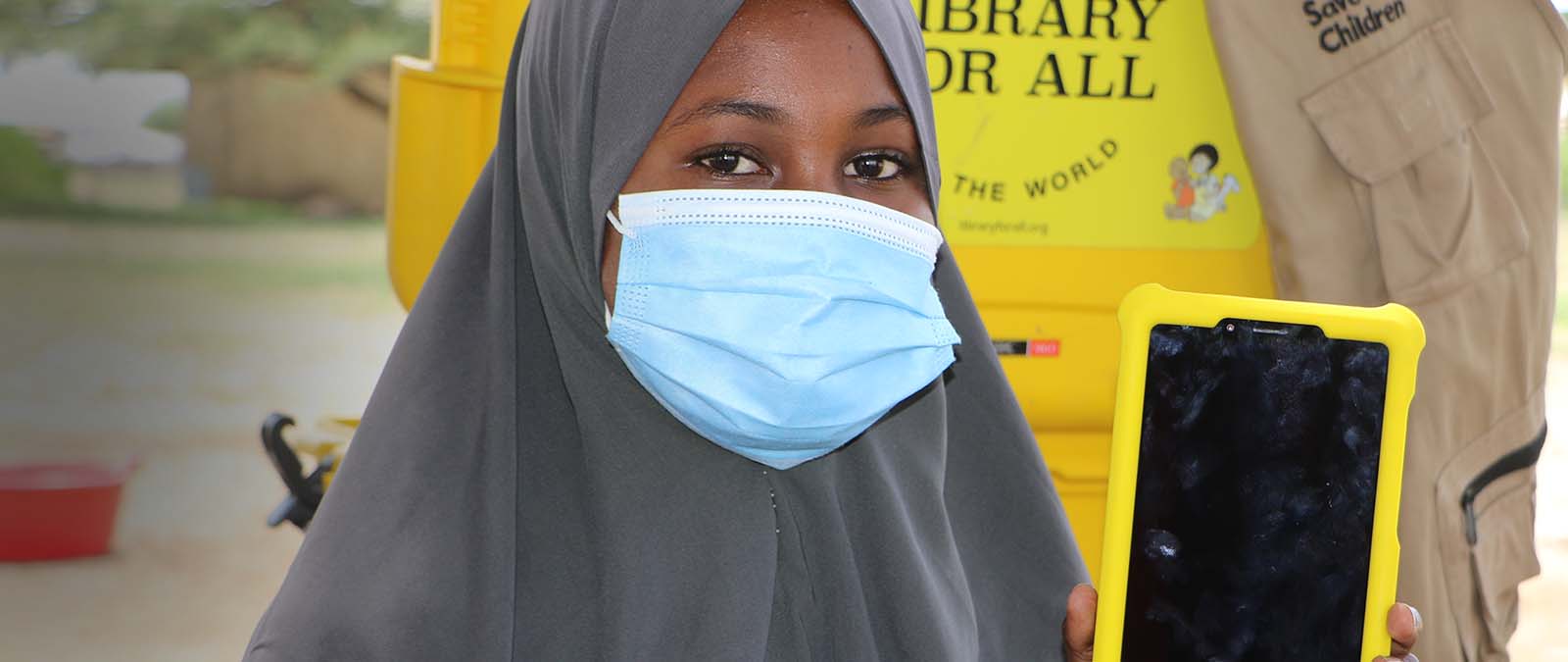 Through the tablets from one of Library for All’s Digital Camel Libraries, Mahadiya can access countless stories, including her own, Mahadiya and the Camel.