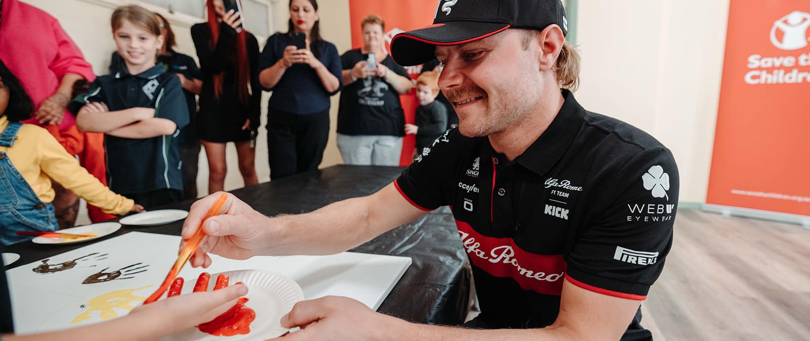 Valtteri Bottas is an advocate for Save the Children and visited Mooroopna Kindergarten to announce the auction of one of his race helmets from the Melbourne F1 event. The funds raised from the auction will benefit the early learning centre, helping to repair the damage and replenish resources.