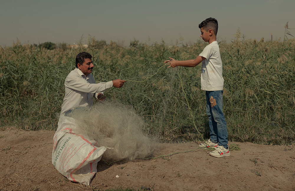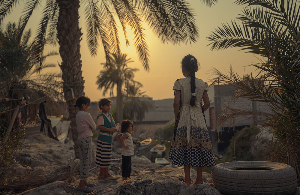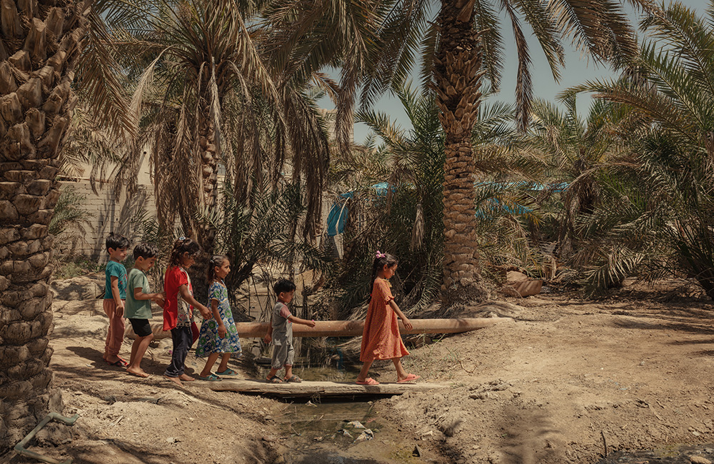 Ahmed,* 14, lives in Abu Al-Khaseeb with his family of five. His family has been displaced twice: first due to armed conflict in the 1990s and more recently due to the climate crisis. They originally worked in agriculture and livestock, but Ahmed’s* father said their animals died due to the intrusion of salt water into their lands, which also damaged their date palms, okras and other crops. The family hasn’t cultivated their lands for two years and is now struggling to make ends meet.