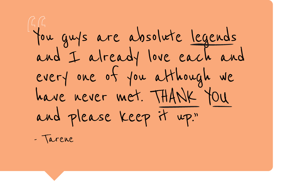 The tones range from ebullient to downright heart wrenching, and from general to deeply personal. Here’s a snapshot of the messages that were shared for our wonderful team around the theme of ‘gratitude’ to inspire and remind us of the best of humanity during difficult times. Thank you to everyone who sent a message of support.