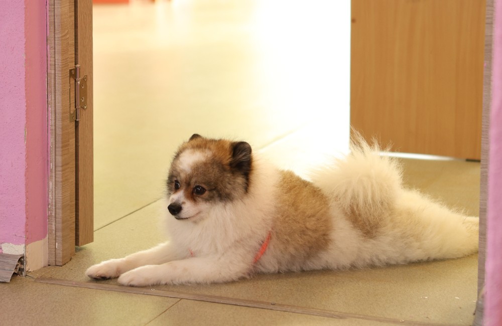 Chivas takes a well-deserved rest on the classroom floor after another successful lesson.